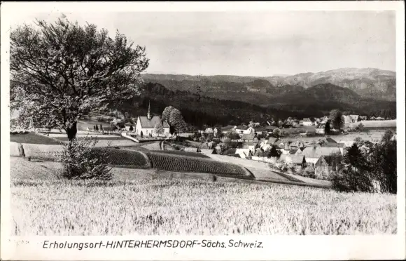 Ak Hinterhermsdorf Sebnitz, Blick auf den Ort, Kirche, Felder