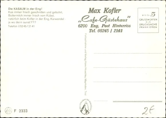 Ak Hinterriß Vomp in Tirol, Alpengasthof Eng, Kasalm, Käse