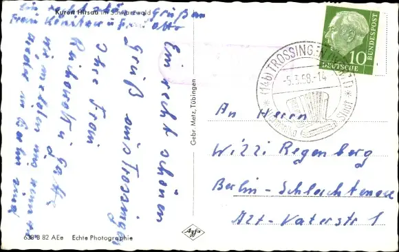 Zustand, siehe Scan, gelaufen, 1958 - ca 14 cm X 9 cm