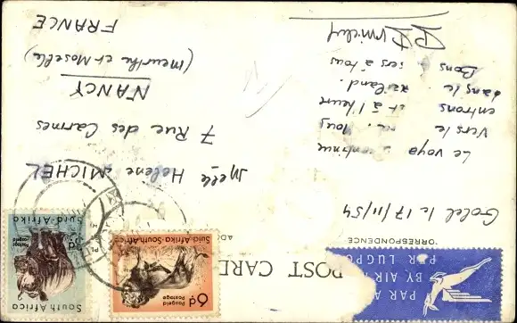 Zustand, siehe Scan, gelaufen, 1954 - ca 9 cm X 14 cm
