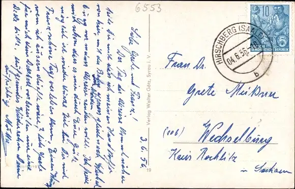 Zustand, siehe Scan, gelaufen, 1956 - ca 14 cm X 9 cm