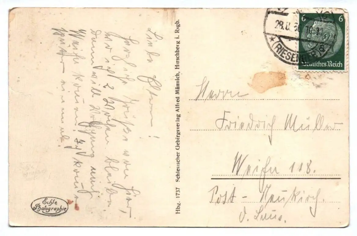 Ak Hirschberg im Riesengebirge Gnadenkirche Schneekoppe 1936 Doksy Tschechien