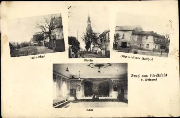 Ak Hirschfeld in Brandenburg, Teilansicht, Kirche, Gasthof Otto Richter