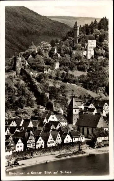 Ak Hirschhorn am Neckar Hessen, Teilansicht der Stadt mit Schloss