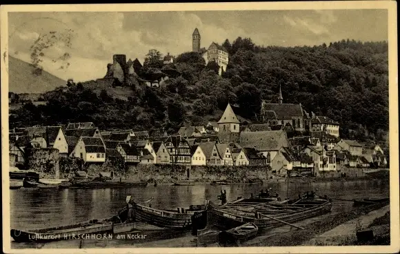 Ak Hirschhorn am Neckar Hessen, Totalansicht, Ruderboote
