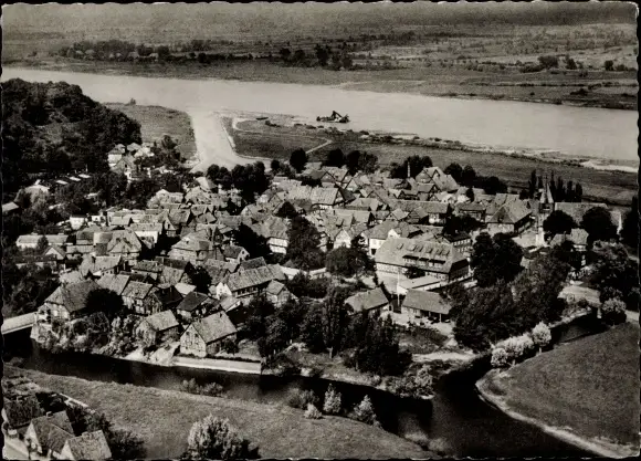 Ak Hitzacker, Altstadt und die Elbe, Luftaufnahme
