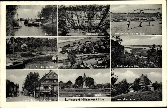 Ak Hitzacker an der Elbe, Hafen, Badestrand, An der Jeetzel, Jugendherberge, Drawehner Torschenke
