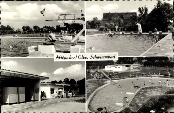 Ak Hitzacker an der Elbe, Schwimmbad, Sprungturm