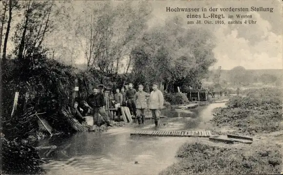 Ak Hochwasser in der vordersten Stellung, Regiment, Soldaten, I. WK