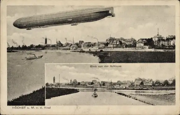 Ak Höchst Frankfurt am Main, Blick von der Schleuse, Zeppelin