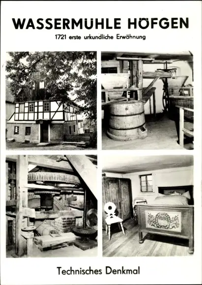 Ak Höfgen Grimma in Sachsen, Wassermühle, Außen- und Innenansicht, Technisches Denkmal
