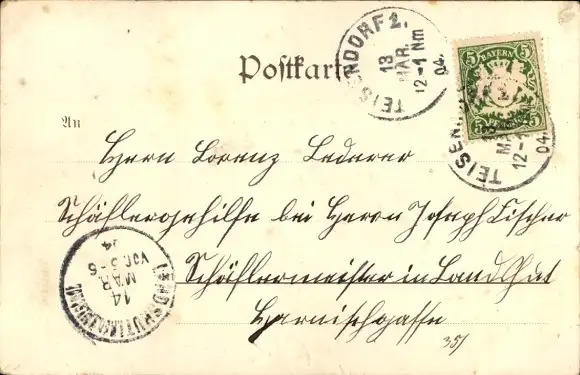 Zustand, siehe Scan, gelaufen, 1904 - ca 14 cm X 9 cm