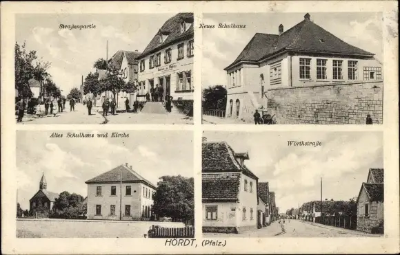Ak Hördt in der Pfalz, Straßenpartie, Neues Schulhaus, Wörthstraße, Kirche