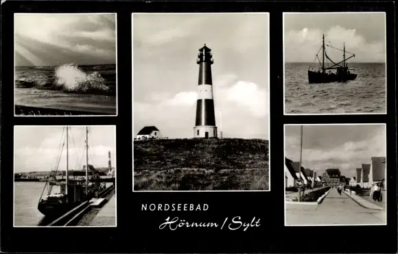 Ak Hörnum auf Sylt Nordfriesland, Leuchtturm, Siedlung, Hafen, Meerblick