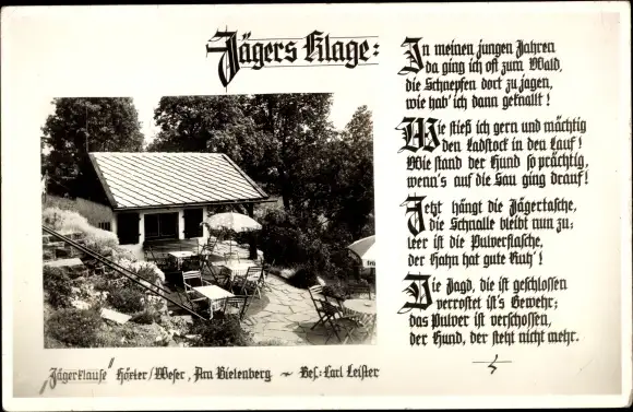 Ak Höxter an der Weser, Jägerklause, Am Bielenberg, Gedicht Jägers Klage