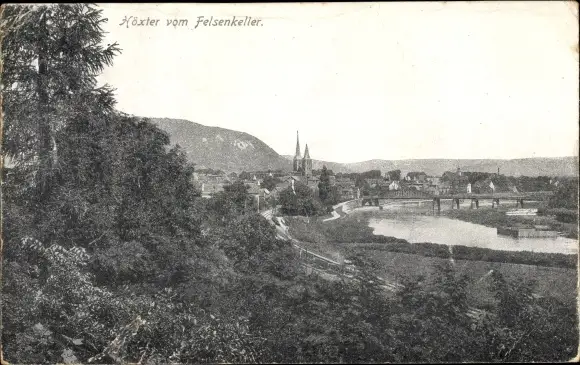 Ak Höxter an der Weser, Ort vom Felsenkeller aus gesehen