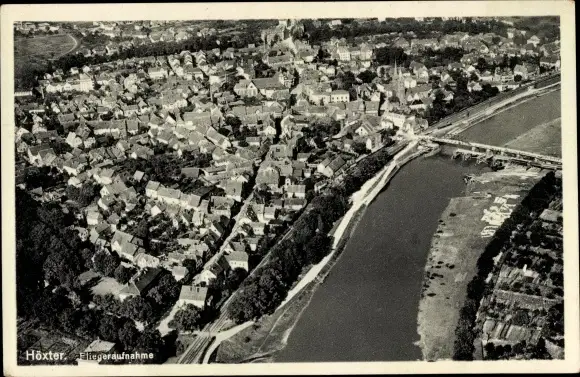 Ak Höxter an der Weser, Panorama, Fliegeraufnahme, Brücke
