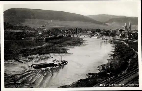 Ak Höxter an der Weser, Panorama, Ziegenberg, Dampfschiff