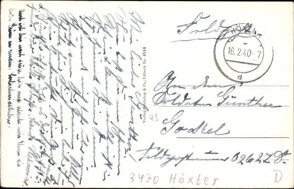 Zustand, siehe Scan, gelaufen, 1940 - ca 14 cm X 9 cm