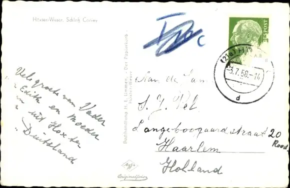 Zustand, siehe Scan, gelaufen, 1956 - ca 14 cm X 9 cm
