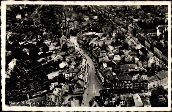 Ak Hof an der Saale Oberfranken Bayern, Fliegeraufnahme der Stadt