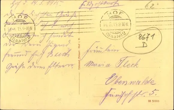 Zustand, siehe Scan, gelaufen, 1915 - ca 14 cm X 9 cm