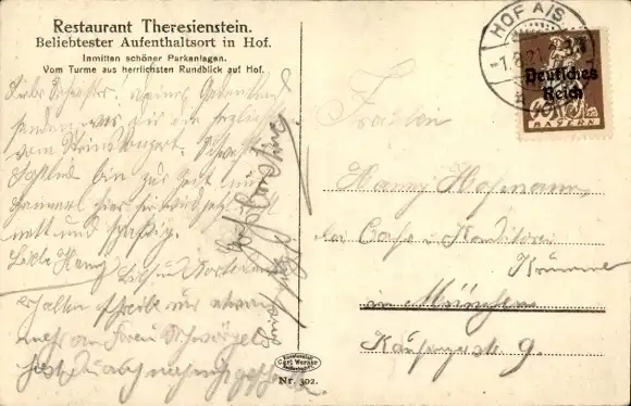 Ak Hof im Westerwald, Turm, Restaurant Theresienstein, Hof