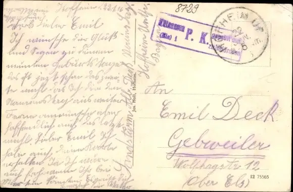 Zustand, siehe Scan, gelaufen, 1916 - ca 14 cm X 9 cm