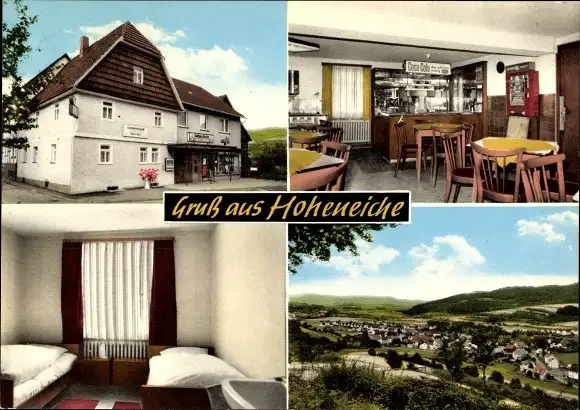 Ak Hoheneiche Wehretal in Hessen, Gasthof Zur Linde, Aussen- und Innenansicht, Gesamtansicht