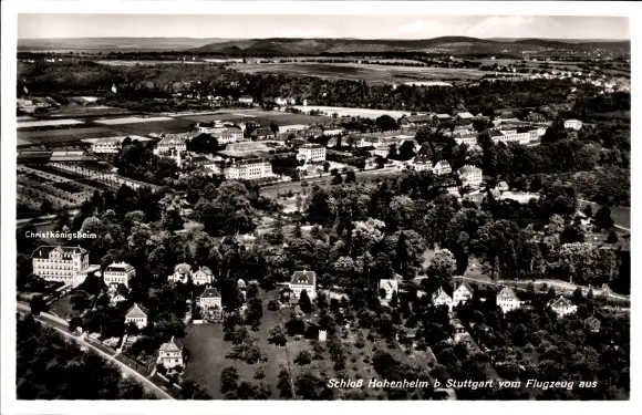 Ak Hohenheim Stuttgart in Württemberg, Fliegeraufnahme mit Schloss und Christkönigsheim