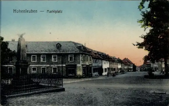 Ak Hohenleuben in Thüringen, Marktplatz, Häuser, Statue, Abendstimmung