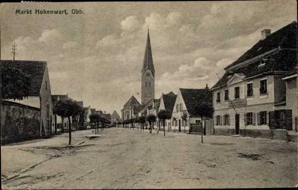 Ak Hohenwart in Oberbayern, Straßenpartie, Kirche