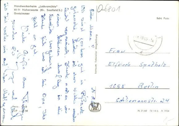 Ak Hohenwarte Thüringen, Handwerkerheim Lothramühle, Gastzimmer