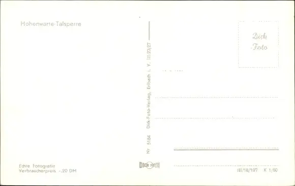 Ansichtskarte, Postkarte, Talsperre, Stausee, Staudamm, Staumauer
