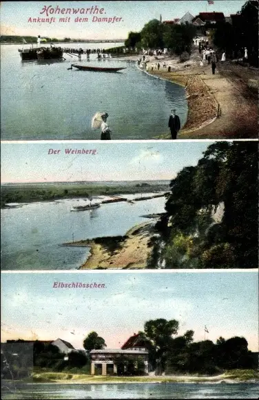 Ak Hohenwarthe an der Elbe Möser Jerichower Land, Ankunft mit dem Dampfer, Weinberg, Elbschlösschen