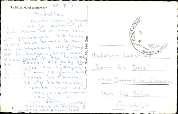 Ak Hohfluh Hasliberg Kt. Bern Schweiz, Hotel Wetterhorn