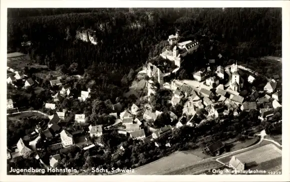Ak Hohnstein Sächs. Schweiz, Fliegeraufnahme, Jugendburg