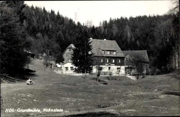 Ak Hohnstein Sächs. Schweiz, HOG Grundmühle am Waldrand