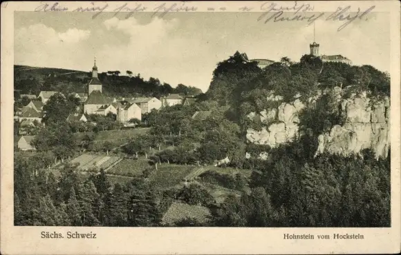 Ak Hohnstein Sächsische Schweiz, Blick vom Hockstein