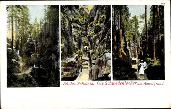 Ak Hohnstein Sächsische Schweiz, Schwedenlöcher
