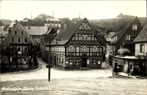 Ak Hohnstein Sächsische Schweiz, Straßenpartie, Gasthof, Fachwerkhaus