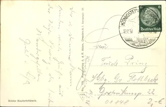 Zustand, siehe Scan, gelaufen, 1938 - ca 14 cm X 9 cm