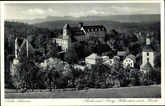 Ak Hohnstein der Sächsischen Schweiz, Stadt und Burg mit Kirche