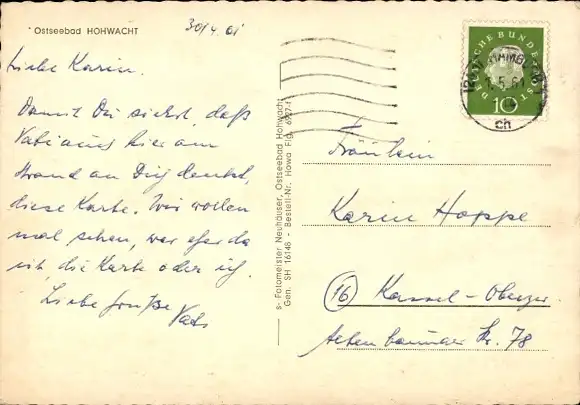 Zustand, siehe Scan, gelaufen, 1961 - ca 15 cm X 10 cm