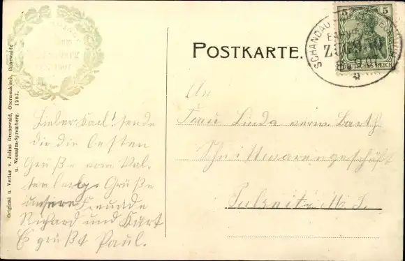 Zustand, siehe Scan, gelaufen, 1907 - ca 14 cm X 9 cm