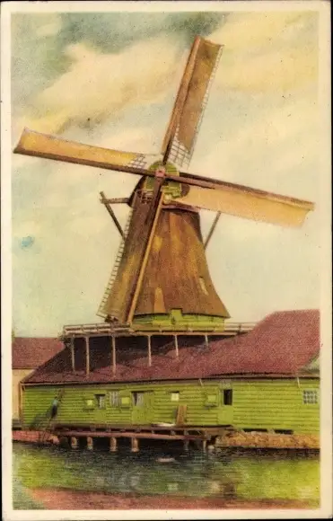 Ak Hollandse molen, Ortspartie mit Niederländischer Windmühle