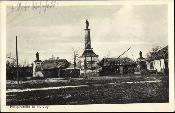 Ak Holoby Ukraine, Hauptstraße, Mariensäule, Platz