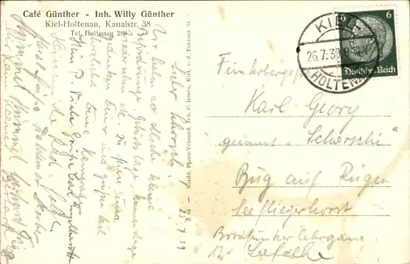 Zustand, siehe Scan, gelaufen, 1939- Inhaber Willy Günther - ca 14 cm X 9 cm
