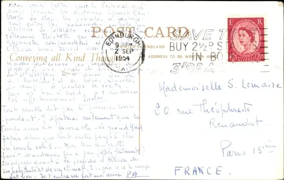 Zustand, siehe Scan, gelaufen, 1954 - ca 14 cm X 9 cm