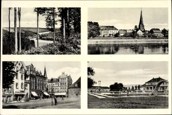 Ak Holzminden an der Weser, Teilansicht, Freibad, Marktplatz, Flusspartie